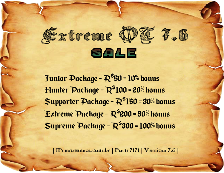 19/08/2024 - All donations made before the last reset (March 2024) had their backup_points reset, considering the continuity of the server. Several actions have been taken and are being taken to correct and improve many aspects of the game, one of which will be the removal of sets (helmet, armor and legs), shields and VIP weapons from the store in an eventual future reset. Therefore, it is necessary to continue raising resources to maintain investments in the server and to keep it online. I count on everyone's understanding, if you have any questions or problems, you can use the support channel on our official Discord.